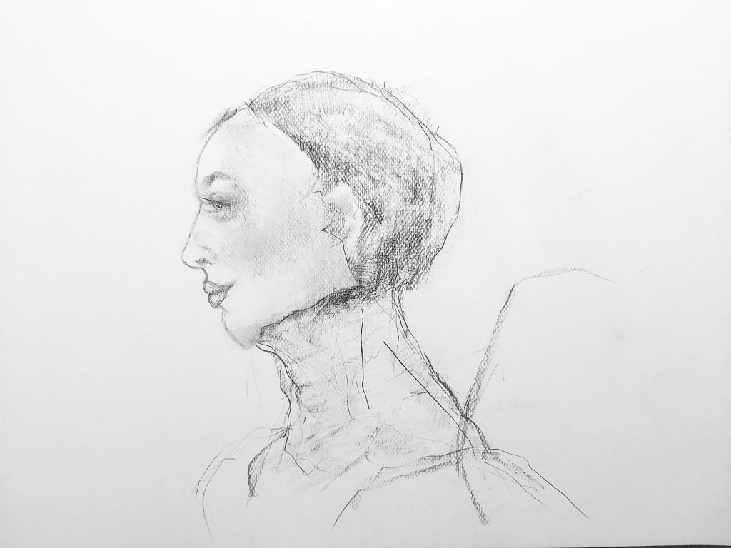 Vi tegner igjen! Ganske rusten, selv om jeg har tegnet nøyaktige studier i sommer. Eller kanskje nettopp derfor: hvordan skal jeg nå tegne korte studier?