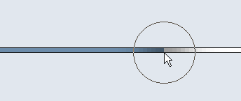 3D - ferdig!En innstilling til før du kan bruke penselen. I menylinjen øverst stiller du inn gjennomsiktigheten på den: Opacity setter vi til 40. Nå skal du sette en eneste prikk med penselen i bildet, og det skal skje på midten, der hvor det blå møter det hvite. Lagre filen for web (File > Save for web).