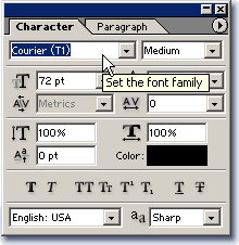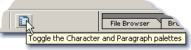 Photoshop gjør jobbenNå skal du la Photoshop gjøre jobben for deg. Om ikke tekstpalettene er åpne, klikker du å knappen for å åpne dem.