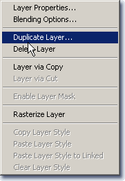 Rasterize layerFørst høyreklikket jeg laget (jeg kaster som kjent aldri noe, kan være at jeg får bruk for det en gang...), og valgte Duplicate Layer... Det nye laget døpte jeg Duplicate Raster i dialogboksen som kommer opp. Ønsker du å vite mer om forskjell på raster- og vektorgrafikk, har jeg en kort forklaring her.